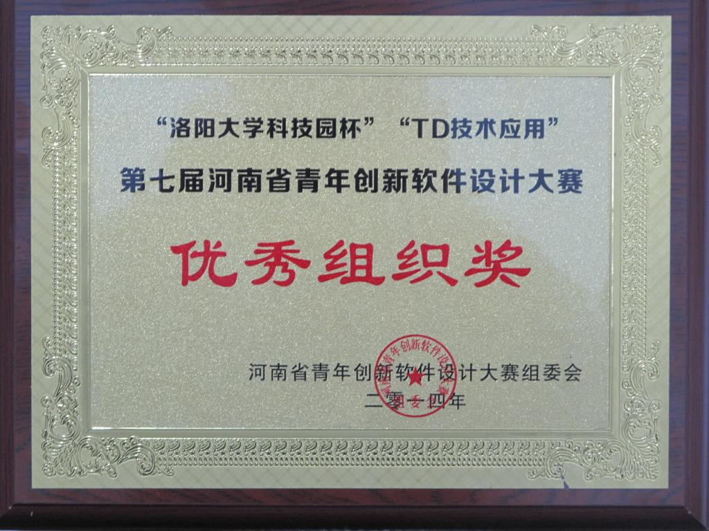 ,第七届河南省青年创新软件设计大赛颁奖典礼在洛阳国家大学科技园举行。yl官网在本届赛事中成绩优异,获得“优秀组织奖”,同时,由信息工程学院报送的作品《物联网智能商铺保全系统》和《基于Android的电子票证系统》分获“信息化推进类”三等奖和“TD技术应用类”优秀奖。