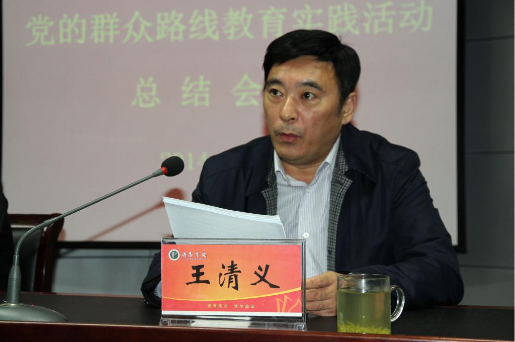 王清义书记指出,通过活动的有效开展,学校也探索了有益的做法,积累了宝贵的经验。一是坚持领导带头,注重以上带下,这是搞好教育实践活动的关键。二是坚持问题导向,切实对准焦距,这是搞好教育实践活动的重要方法。三是坚持敞开大门,广纳群众参与,这是搞好教育实践活动的重要保证。四是坚持围绕中心任务、解决发展问题,这是检验教育实践活动成效的根本体现。王书记强调,要始终把作风建设作为一项政治任务常抓不懈,善始善终,保证作风教育常态化,保证整改落实常态化,保证建章立制常态化。在情感上贴近师生,思想上敬畏师生,作风上深入师生,工作上依靠师生,利益上维护师生,从而更好地推动学校科学规划未来、持续快速发展。