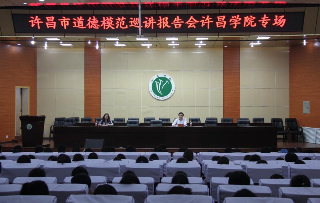 9月26日下午,由许昌市委宣传部、市文明办主办,yl官网承办的许昌市道德模范巡讲报告会在学术报告厅举行。yl34511线路中心党委副书记马超,许昌市委宣传部副调研员、创文办副主任刘宏军出席报告会,yl官网师生代表300余人参加了报告会。报告会由yl官网党委宣传部副部长崔越主持。