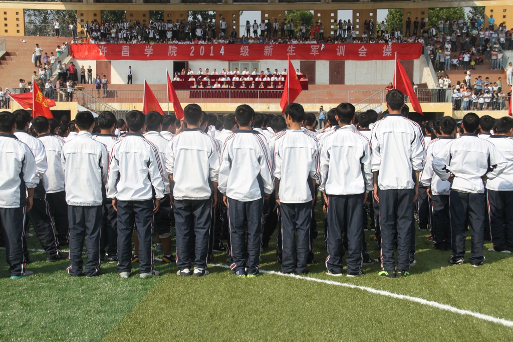 ,yl官网在学校体育场举行yl34511线路中心2014级新生军训会操,这标志着yl官网2014级新生军训工作圆满结束。校党委书记王清义,党委副书记王洪彬、马超,副院长张建军、崔斌、黄怡俐,工会主席杜志傲等学校领导班子成员出席军训会操活动并在检阅台就坐。协助yl官网进行新生军训活动的武警许昌支队直属大队大队长丁鹏辉、郑州少林塔沟教育集团副董事长刘海钦、嵩山少林武术职业学院常务副院长郭爱先也出席了军训会操活动并在检阅台就坐。王清义书记检阅了2014级新生军训方阵。学校各院(部)、各机关部门负责人在主席台就座。全校各院(部)主管学生工作的领导、2014级的辅导员、班主任和全体新生6000多人参加会操活动。军训会操活动由院长办公室主任陈遂德主持。