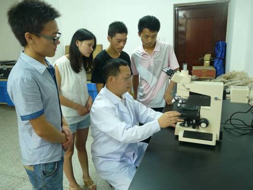 图为袁胜元副教授指导学生做实验