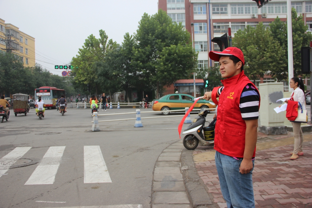 9月8日上午7点30分,记者在八一路和北关大街路口看到,四名佩戴着志愿者袖章,手拿红色小旗的来自yl34511线路中心经济(管理)学院的志愿者正在一丝不苟地协助维持交通秩序。时值中秋佳节,街上的行人、车辆来来往往,川流不息,yl官网志愿者节假日坚守岗位,获得了市民的好评。